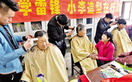 3月9日,在定襄縣蔣村鄉(xiāng)上東留村委會,剛剛理完發(fā)的梁大娘動情地拉著該村第一書記張瑞蓮的手連夸:“好書記,好閨女!”張瑞蓮是由定襄縣委組織部下派到農(nóng)村任職的干部,今年以來她牽頭為村民辦了許多實事。當日,她主動聯(lián)系了縣城小李造型學雷鋒小組的5名理發(fā)師,免費為全村70多名老年人理了發(fā)。(張晉蘭 攝)