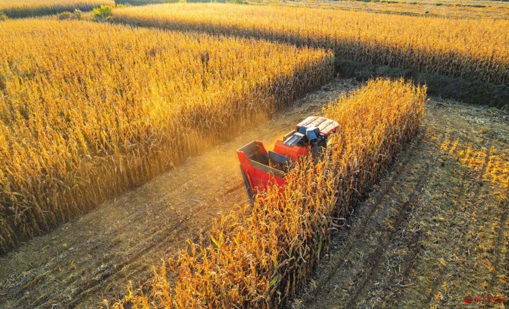 近日,原平市崞陽鎮(zhèn)下韓村村民正在緊張有序地搶收玉米,確保秋糧顆粒歸倉。 (