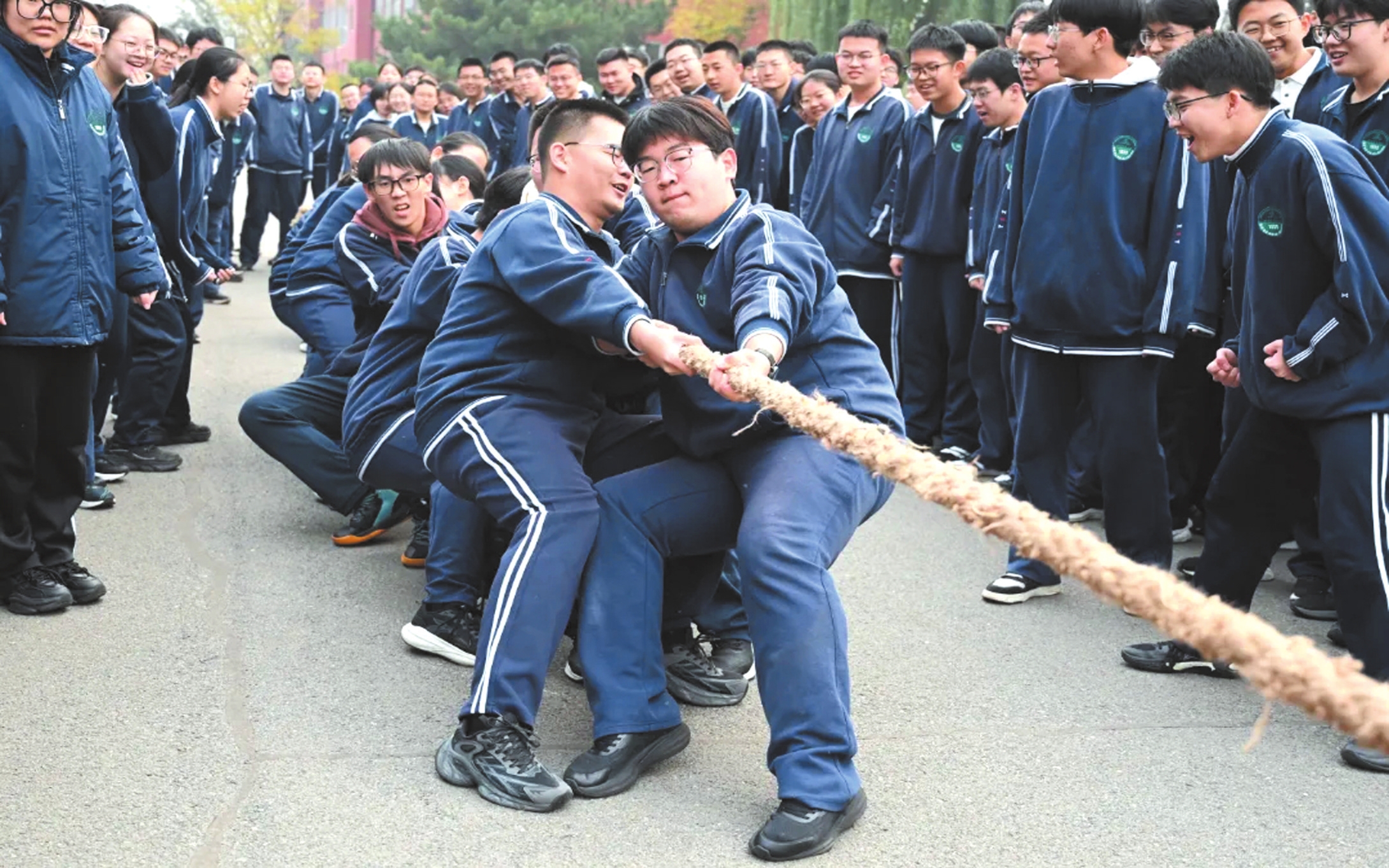 近日,忻州實驗中學第22屆校園文化藝術體育節(jié)拔河比賽舉行。比賽哨聲一響,賽場瞬間沸騰。參賽隊員們緊握長繩,雙腳蹬地,身體后傾,每一個動作都凝聚著集體的力量與智慧。老師們化身為全情投入的啦啦隊長,揮動雙臂,聲嘶力竭地為隊員們指揮節(jié)奏;各班同學則自發(fā)組成陣容強大后援團,將現(xiàn)場氛圍一次次推向高潮。 (記者 馮偉倫攝)