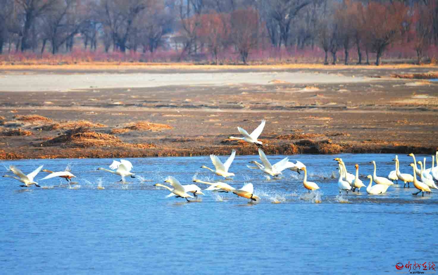 滹沱河定襄段迎來天鵝回歸