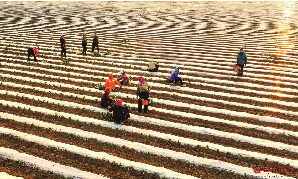 4月2日,忻府區(qū)陽坡村,村民正在栽植小白菜。(
