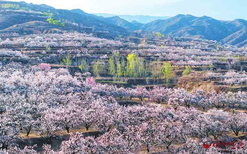 清明時(shí)節(jié),忻府區(qū)奇村鎮(zhèn)井溝村迎來杏花盛放期。粉白花瓣綴滿枝頭,順著層層梯田漫山鋪展,將溝壑縱橫的黃土高原暈染成一幅溫柔的春日畫卷。(記者 馮曉磊攝)