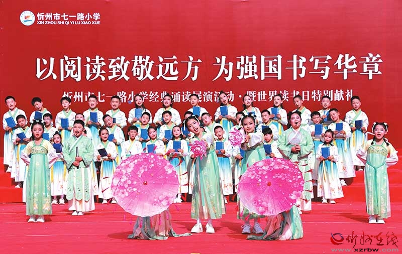 4月20日,忻州市七一路小學舉辦“以閱讀致敬遠方 為強國書寫華章”經(jīng)典誦讀展演,獻禮世界讀書日,童聲誦經(jīng)典,書香潤校園。(
