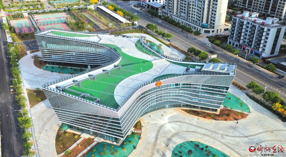 4月28日,忻州市精心打造的集文化活動、職工服務(wù)、教育培訓(xùn)于一體的工人文化宮項目,進入沖刺收尾階段,預(yù)計5月啟用。圖為無人機拍攝的忻州市工人文化宮全景。 (記者 張存良攝)