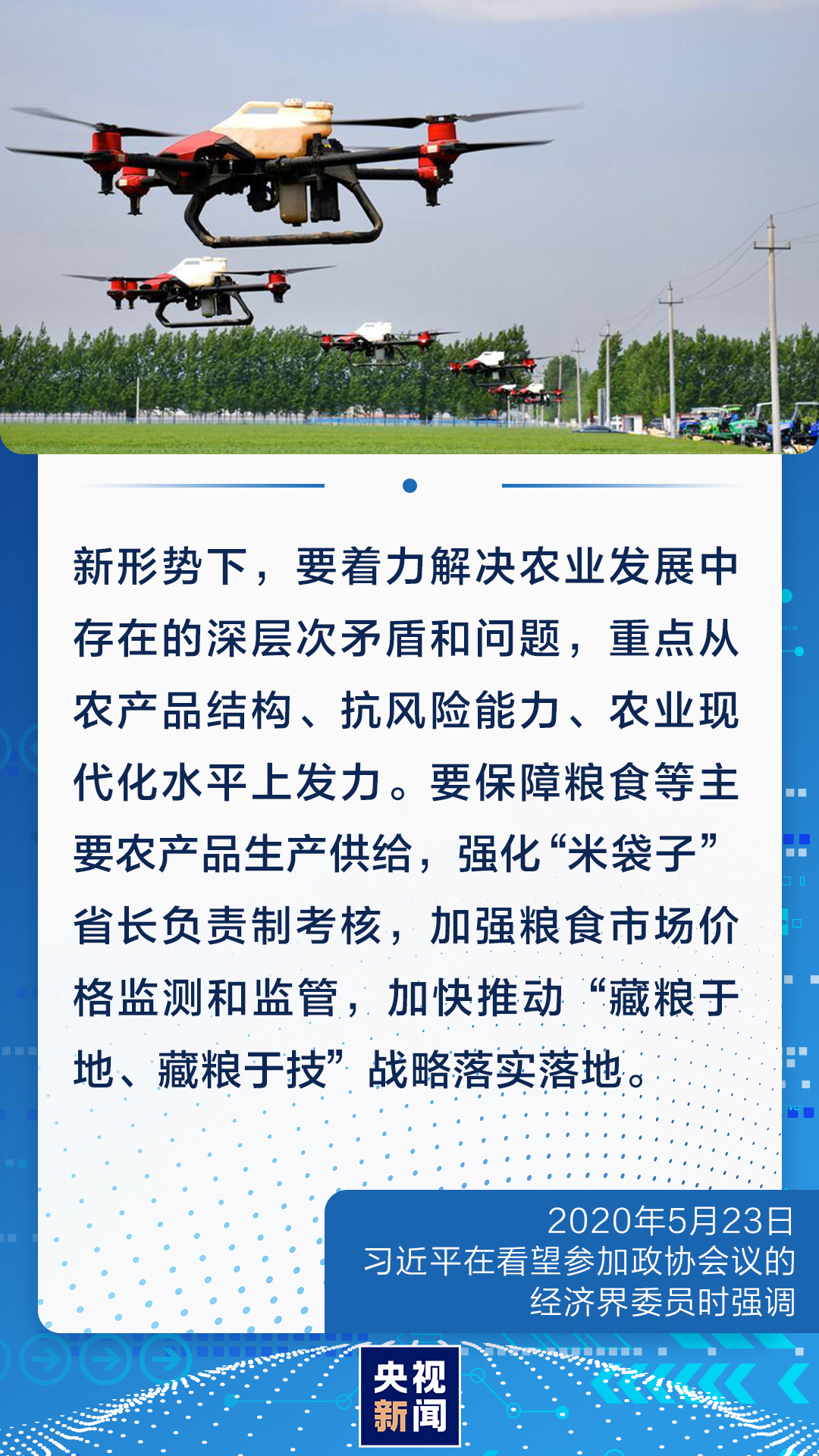 對(duì)我們這樣一個(gè)有著14億人口的大國(guó)來說,農(nóng)業(yè)基礎(chǔ)地位任何時(shí)候都不能忽視和削弱,手中有糧、心中不慌在任何時(shí)候都是真理。今年開春,習(xí)近平總書記對(duì)全國(guó)春季農(nóng)業(yè)生產(chǎn)工作作出重要指示強(qiáng)調(diào),越是面對(duì)風(fēng)險(xiǎn)挑戰(zhàn),越要穩(wěn)住農(nóng)業(yè),越要確保糧食和重要副食品安全。