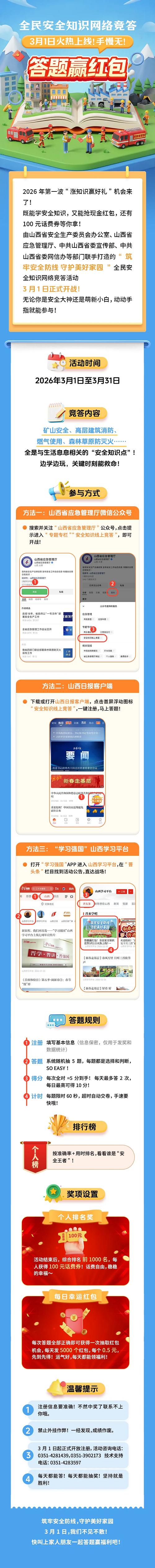 答題贏紅包!全民安全知識網(wǎng)絡(luò)競答3月1日火熱上線!手慢無!