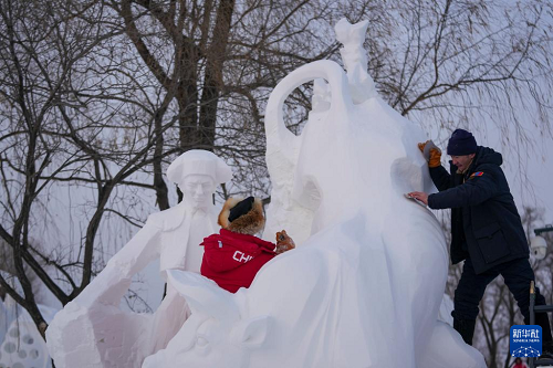 1月8日是“三九”首日,為期4天的第28屆中國·哈爾濱國際雪雕比賽在嚴寒中進入第三天,雪雕作品顯露芳容。