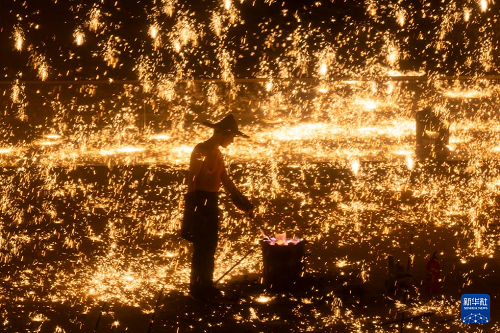 非遺“打鐵花”表演點亮上海