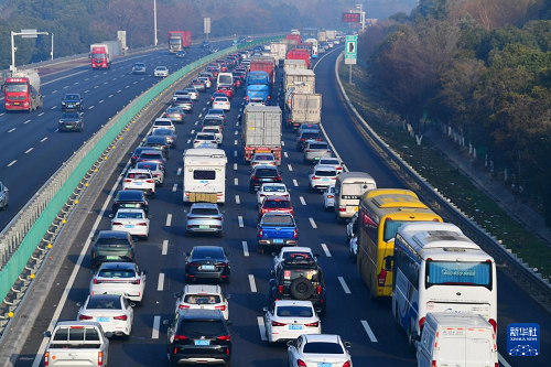 2月13日拍攝的京滬高速江蘇無(wú)錫段的車流。(新華社發(fā) 還月亮 攝)