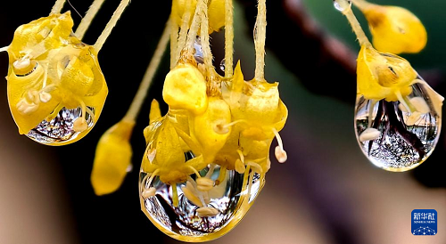這是3月1日拍攝的河南省洛陽市街頭花朵上的雨珠。(新華社發(fā) 高山岳 攝) 一場春雨過后,晶瑩剔透的雨珠綴滿枝頭,勾勒出別樣春日景致。 (責(zé)任編輯:蔡文斌) |