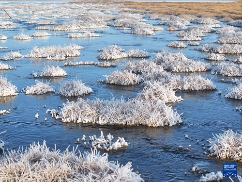 春回大地,位于甘肅省阿克塞哈薩克族自治縣阿勒騰鄉(xiāng)的哈爾騰河冰雪消融,初現(xiàn)生機。