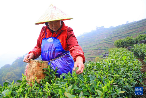 3月29日,在廣西賀州市平桂區(qū)鵝塘鎮(zhèn)盤谷村,茶農(nóng)在采摘明前茶。(新華社發(fā) 黃旭胡 攝)