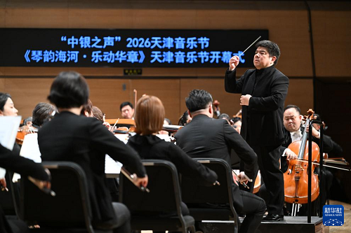4月26日,天津交響樂團(tuán)藝術(shù)總監(jiān)、首席指揮李飚指揮2026天津音樂節(jié)開幕式演出《琴韻海河·樂動華章》。(新華社記者 孫凡越 攝)