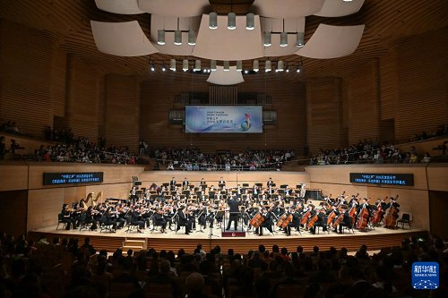 4月26日拍攝的2026天津音樂節(jié)開幕式演出《琴韻海河·樂動華章》現(xiàn)場。(新華社記者 孫凡越 攝)