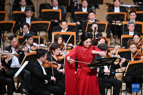 4月26日,二胡演奏家宋飛在2026天津音樂節(jié)開幕式上演出。(新華社記者 孫凡越 攝)