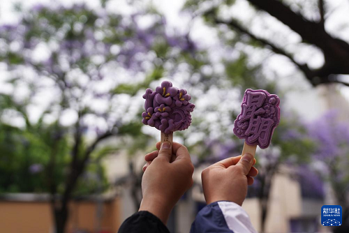 4月26日,游客在昆明市教場中路展示文創(chuàng)雪糕。(新華社發(fā) 梁志強 攝)