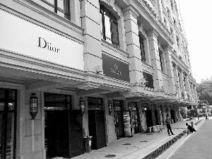 昨日,北京晨報(bào)記者來到位于建國(guó)門橋附近的中海楓丹公館,看到整個(gè)樓盤有五棟樓,呈凹字形。建筑物四周設(shè)有30多個(gè)大小不一的底商,每個(gè)底商頂部都掛著一個(gè)看似國(guó)際大牌的招牌,既有奢侈品,也有快餐業(yè),顏色鮮艷,十分奪目。就在這些大牌的招牌旁邊,張貼著大幅廣告“黃金旺鋪火爆招商中”。