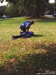 一名目擊導(dǎo)游說:“剛才有兩個(gè)客人在悉尼草坪上方便,讓警察看見了。警察追他們,他們提著褲子跑。他們惱羞成怒,要打警察。警察一個(gè)過肩摔,把一個(gè)男的摔地上骨折了。現(xiàn)在救護(hù)車,警車都過來了?!?/p>