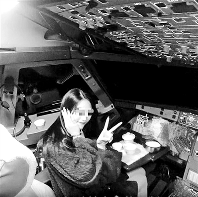 女子擺出“剪刀手”動(dòng)作在駕駛艙拍照