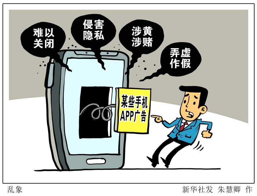 記者調(diào)查發(fā)現(xiàn),當(dāng)前手機(jī)APP廣告難以關(guān)閉、侵害隱私、涉黃涉賭、弄虛作假等問題仍屢禁不止,治理力度不能減弱。