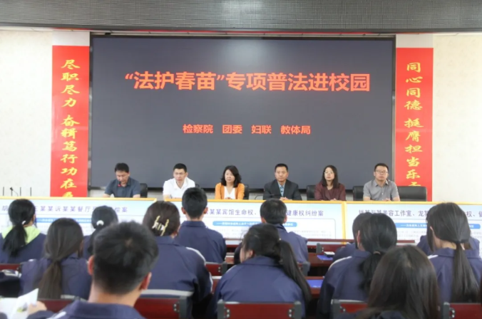 新學(xué)期伊始,為進一步提升未成年人法治意識、法治觀念和自我保護能力,9月9日,靜樂縣檢察院攜手縣人大、教體局、團縣委、婦聯(lián)共同走進靜樂縣職業(yè)中學(xué)開展“法護春苗”法治進校園活動,將法治關(guān)懷與守護送到學(xué)生身邊。院黨組書記、檢察長李冰參加活動。