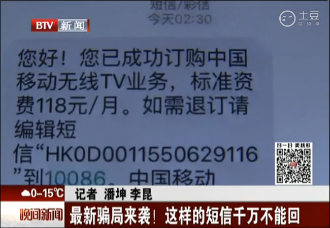圖1:北京電視臺(tái)報(bào)道冒充“中國移動(dòng)”新騙局(資料圖)
