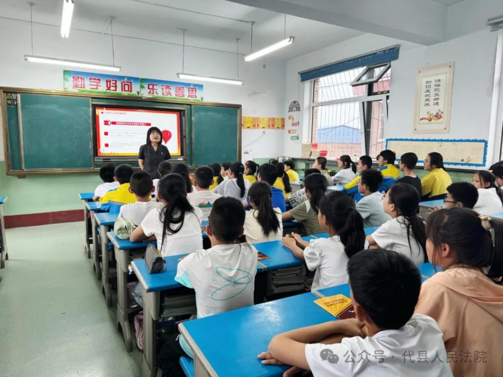 為加強(qiáng)校園法治教育,進(jìn)一步提高未成年人的法治意識和法律素養(yǎng),助推平安校園、法治校園建設(shè)。近日,代縣法院深入大眾小學(xué)、代縣五中小學(xué)部開展普法教育。