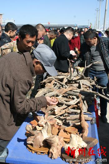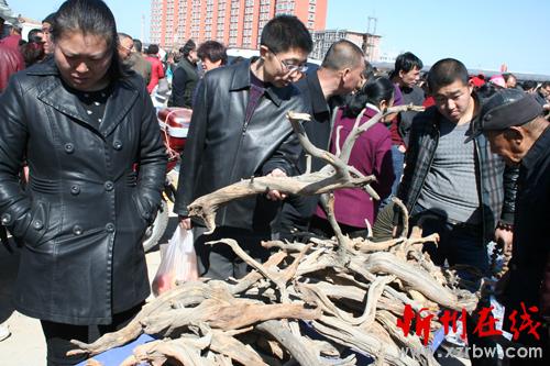 3月13日,原平市集貿(mào)市場上農(nóng)民正在賣形態(tài)各異廢棄的柏樹木根枝 他們變廢為寶促增收,很受市民喜愛收買。該市,采取多措并舉積極引導(dǎo)農(nóng)民增收致富,加快奔小康步伐。(趙月仁 攝)