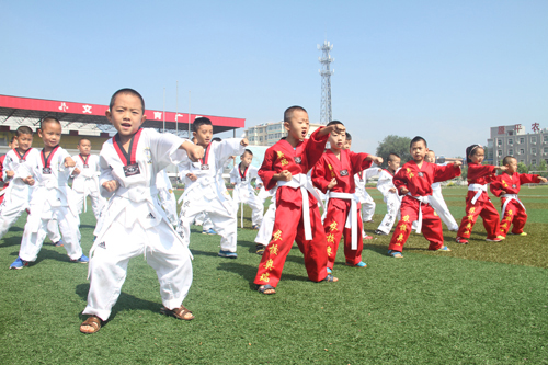 7月17日,孩子們在原平市農?;顒又行木毩曱倘?。暑假期間,該市許多青少年投入到另一種學習狀態(tài),選擇學習跆拳道、舞蹈、書法、美術、音樂等,感受精彩的藝術世界,豐富暑假生活。(褚震 攝)