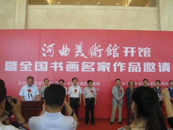 8月31日,河曲美術(shù)館開(kāi)館暨全國(guó)書(shū)畫(huà)名家作品邀請(qǐng)展開(kāi)幕儀式舉行。中國(guó)美術(shù)家協(xié)會(huì)主席劉大為題寫(xiě)了館名。著名書(shū)畫(huà)家張旭光、專業(yè)畫(huà)家胡寶利專程從北京趕來(lái)祝賀。