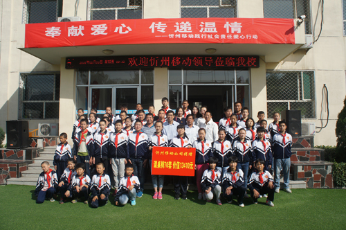 近日,移動(dòng)公司忻州分公司的領(lǐng)導(dǎo)及其員工為忻州市特殊教育學(xué)校的孩子們捐助來(lái)70套課桌凳,這是開(kāi)學(xué)以來(lái)讓孩子們高興的事。捐贈(zèng)儀式在忻州市特殊教育學(xué)校舉行,100余名師生歡聚一堂,共同見(jiàn)證了這一愛(ài)心涌動(dòng)的感人時(shí)刻。
