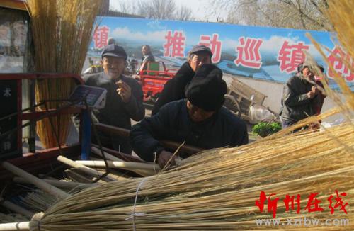 冬閑季節(jié),河曲縣農(nóng)民千方百計(jì)開辟增收門路,民間形式的冬季行動(dòng)正在升溫。夏營村農(nóng)民利用俗稱“直芨”的芨芨草手工制作大掃帚,分量足、扎得牢,而且承諾“吊頭一把換兩把”,解決了群眾為“吊頭”而煩惱的后顧之憂,吸引群眾前來選購。圖為11月27日在巡鎮(zhèn)趕集的群眾選購“直芨”大掃帚。(賈金理 攝)