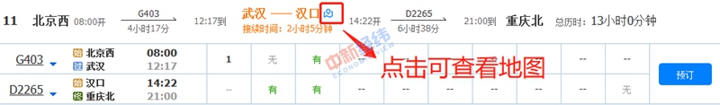 在信息篩選完畢后,大家可以從黃色字體標(biāo)注的車站和時間信息,得知是否在同一車站換乘以及接續(xù)時間。需要注意的是,不同的換乘地點(diǎn)一般接續(xù)時間不一樣,大家應(yīng)充分考慮各種影響換乘的因素,預(yù)留充分的時間搭乘下一趟列車。