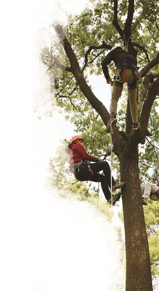 潘忠東說,攀樹于上世紀(jì)80年代起源于美國,現(xiàn)在,在美國至少有1000個(gè)學(xué)校開設(shè)攀樹課程。2012年,“攀樹運(yùn)動(dòng)”課程率先在廈門大學(xué)開課,60名大一新生成為首批學(xué)員?!拔覀冞@次活動(dòng)的總教練是從福建請來的,目的就是培養(yǎng)出蘇州本土的攀樹教練?!?/p>
