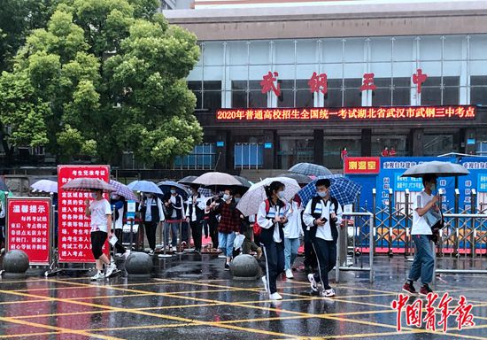 7月7日上午,湖北省武漢市武鋼三中考點(diǎn),語(yǔ)文考試結(jié)束后,考生們陸續(xù)走出考場(chǎng)。中青報(bào)·中青網(wǎng)記者 朱娟娟/攝
