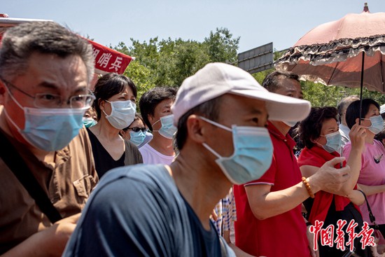 7月7日上午,北京市第八十中學(xué)門(mén)口,高考語(yǔ)文考試結(jié)束后,等待考生的家長(zhǎng)們。中青報(bào)·中青網(wǎng)記者 李雋輝/攝