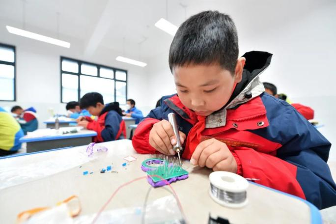 2023年12月14日,在湖北省襄陽市??悼h后坪鎮(zhèn)中心學(xué)校,學(xué)生們參加電子制作競賽。通訊員 楊韜 黃玲 攝 背景:為深入貫徹習(xí)近平總書記關(guān)于在教育“雙減”中做好科學(xué)教育加法的重要指示精神,全面落實《教育部等十八部門關(guān)于加強新時代中小學(xué)科學(xué)教育工作的意見》要求,推動科學(xué)教育高質(zhì)量發(fā)展,助力教育強國建設(shè),2023年,教育部決定分3批啟動全國中小學(xué)科學(xué)教育實驗區(qū)、實驗校建設(shè)項目。 解讀:基礎(chǔ)教育階段加強科學(xué)教育,是提升學(xué)生科學(xué)素養(yǎng)、豐富科技創(chuàng)新人才儲備的關(guān)鍵舉措。在教育“雙減”中做好科學(xué)教育加法,全面提升科學(xué)育人水平,有助于提升中小學(xué)科學(xué)教育質(zhì)量和水平,完善青少年科技創(chuàng)新人才培養(yǎng)體系,服務(wù)教育、科技、人才三位一體戰(zhàn)略布局落實,增強國際競爭力,加快建設(shè)教育強國。 學(xué)生心理健康 加強心理健康教育, 培養(yǎng)人格健全的民族復(fù)興先鋒力量