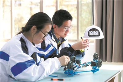 結(jié)合時(shí)代發(fā)展特點(diǎn)和學(xué)生未來成長需要,上海中學(xué)的教師們自主開發(fā)設(shè)計(jì)了數(shù)學(xué)、物理、化學(xué)等領(lǐng)域的大學(xué)先修課程,供有興趣的學(xué)生選學(xué)。最近,學(xué)校還在科技班、工程班融合大STEM概念(科學(xué)、技術(shù)、工程和數(shù)學(xué)教育形成有機(jī)整體,培養(yǎng)學(xué)生創(chuàng)新精神與實(shí)踐能力)基礎(chǔ)上,將勞動(dòng)技術(shù)課程設(shè)置為機(jī)械設(shè)計(jì)與制造基礎(chǔ)、電子技術(shù)、開源硬件及傳感器基礎(chǔ)等12個(gè)模塊,供高一、高二年級(jí)全體學(xué)生選學(xué)。(于珍 任朝霞)