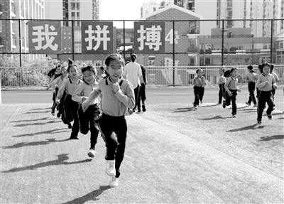 每天上午、下午各有一次大課間活動,每次半小時,每天都有一節(jié)體育課,在廈門高新學校,學生每天要進行3次集中體育鍛煉。