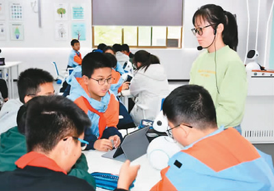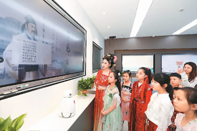7月19日,在安徽省淮北市圖書館AI智能廳,孩子們正在與“詩(shī)仙李白”進(jìn)行互動(dòng)。李 鑫攝(人民視覺) 數(shù)學(xué)課上,智能筆的運(yùn)用提高了幾何作圖的準(zhǔn)確度和輔助線的清晰度,縮短了課堂作圖時(shí)間;英語(yǔ)課上,學(xué)生手持答題器朗讀,系統(tǒng)即時(shí)分析語(yǔ)音、語(yǔ)法準(zhǔn)確度,并提供個(gè)性化改進(jìn)建議,教師在終端同步獲取學(xué)生測(cè)評(píng)報(bào)告;操場(chǎng)上,借助學(xué)生佩戴的臂帶設(shè)備,操場(chǎng)大屏可實(shí)時(shí)顯示學(xué)生健康狀況……當(dāng)前,國(guó)家教育數(shù)字化戰(zhàn)略行動(dòng)正扎實(shí)推進(jìn),各級(jí)各類學(xué)校積極探索智慧校園建設(shè),開辟教育新形態(tài),提升師生數(shù)字素養(yǎng),讓教育插上數(shù)字翅膀。 AI助力個(gè)性化教學(xué) “快看!‘小飛’和我互動(dòng)了!”在江蘇省無(wú)錫市太湖格致中學(xué)的人工智能實(shí)驗(yàn)室里,學(xué)生們?cè)诶蠋煹闹笇?dǎo)下操控平板電腦進(jìn)行編程,看到“小飛”智能機(jī)器人依據(jù)指令完成操作程序指定的動(dòng)作。憨態(tài)可掬的“小飛”機(jī)器人根據(jù)設(shè)定的結(jié)果,露出“酷酷”“茫然”等各種不同的表情。 隨著5G、人工智能等技術(shù)在教育領(lǐng)域不斷深入應(yīng)用,智能分析系統(tǒng)、個(gè)性化推薦算法等先進(jìn)技術(shù)讓課堂“活”起來(lái),全新的教學(xué)場(chǎng)景讓學(xué)習(xí)不只是聽講,還能幫助培養(yǎng)學(xué)生觀察思考、解決問(wèn)題、表達(dá)觀點(diǎn)的能力,學(xué)生們從接收知識(shí)的“聽課者”轉(zhuǎn)變?yōu)閰⑴c實(shí)踐的“創(chuàng)想家”,有效提升了學(xué)生的創(chuàng)新意識(shí)、創(chuàng)新能力和科學(xué)素養(yǎng)。AI+大數(shù)據(jù),正在不斷推動(dòng)個(gè)性化教學(xué)。 近年來(lái),無(wú)錫經(jīng)開區(qū)在“AI+教育”方面不斷努力,探索科技育人新模式。據(jù)介紹,2021年,無(wú)錫經(jīng)開區(qū)全面引入人工智能課程,針對(duì)小學(xué)、初中不同學(xué)段,開設(shè)“AI神奇動(dòng)物”“超級(jí)工程師”等8門人工智能普及課程。 “課前,資源中心的海量?jī)?yōu)質(zhì)素材支持我們更高效的備課;課上,通過(guò)智慧平板,老師們可以發(fā)布各種有趣的小訓(xùn)練,活躍課堂氛圍的同時(shí)還能實(shí)時(shí)收集學(xué)生的學(xué)情數(shù)據(jù),及時(shí)調(diào)整課堂教學(xué)節(jié)奏?!碧裰轮袑W(xué)語(yǔ)文組老師董秀琴在接受采訪時(shí)說(shuō),“智慧課堂為教與學(xué)帶來(lái)了更多新的可能?!?/p> “學(xué)校一直不斷探索人工智能教育的新模式和新方法,構(gòu)建人工智能教育生態(tài)圈,打造了一支專業(yè)的教師隊(duì)伍,為學(xué)生提供有趣的人工智能課程和實(shí)踐機(jī)會(huì)?!碧裰轮袑W(xué)校長(zhǎng)王萬(wàn)萌表示,“在科技創(chuàng)新競(jìng)賽、機(jī)器人競(jìng)賽、創(chuàng)意編程與設(shè)計(jì)競(jìng)賽中,格致學(xué)子多次榮獲國(guó)家級(jí)、省級(jí)科技獎(jiǎng)項(xiàng)?!?/p> 智慧課堂是智慧校園建設(shè)的核心環(huán)節(jié)。無(wú)錫市東絳實(shí)驗(yàn)學(xué)校全力打造智慧課堂,在云端平臺(tái)的支撐下,老師和學(xué)生通過(guò)平板互聯(lián)互通,深入教學(xué)全場(chǎng)景,備、教、批、輔形成了精準(zhǔn)的教學(xué)閉環(huán)。 東絳實(shí)驗(yàn)學(xué)校副校長(zhǎng)陳秋曉表示:“以往的課堂評(píng)講,很難讓同學(xué)們看到彼此的答題情況,現(xiàn)在,學(xué)生們可以利用平板及時(shí)拍照上傳,我們就可以實(shí)時(shí)精準(zhǔn)反饋、調(diào)整課堂進(jìn)度?!?/p> 據(jù)了解,無(wú)錫市教育局于2024年3月印發(fā)了《無(wú)錫市推進(jìn)中小學(xué)人工智能教育工作方案》,明確提出了推進(jìn)中小學(xué)人工智能教育工作的總體要求、工作目標(biāo)、主要任務(wù)和保障措施,并于6月舉辦了“人工智能進(jìn)課堂”(學(xué)前組)優(yōu)質(zhì)課評(píng)比活動(dòng),鼓勵(lì)教師探索生成式人工智能、人形機(jī)器人等在教育教學(xué)中的應(yīng)用,實(shí)現(xiàn)教育與技術(shù)的有機(jī)融合。按照該方案,到2026年底,無(wú)錫市將構(gòu)建人工智能典型校園應(yīng)用場(chǎng)景10個(gè),建設(shè)高水平人工智能實(shí)驗(yàn)室20間,認(rèn)定人工智能教育重點(diǎn)學(xué)校30所,開發(fā)人工智能教育優(yōu)質(zhì)課程40門,培訓(xùn)人工智能教育師資超500人次。 當(dāng)人工智能遇上傳統(tǒng)書法,會(huì)是一種怎樣的體驗(yàn)? 日前,湖北省武漢市東湖高新區(qū)光谷十八小的一個(gè)書法課堂玩出了新花樣,學(xué)生們通過(guò)智能設(shè)備與“AI教師”互動(dòng),體驗(yàn)了一場(chǎng)別開生面的書法課程:“AI教師”利用先進(jìn)的圖像識(shí)別技術(shù),實(shí)時(shí)分析學(xué)生的筆跡,提供個(gè)性化的指導(dǎo)和建議。學(xué)生們?cè)贏I的輔助下,不僅能夠快速掌握書法的基本技巧,還能在練習(xí)中不斷進(jìn)步,提高書法水平。 近年來(lái),東湖高新區(qū)大力推進(jìn)人工智能與教育深度融合,區(qū)內(nèi)學(xué)校人工智能教學(xué)設(shè)施投放量、人工智能課程開設(shè)數(shù)量與類型、師生數(shù)字素養(yǎng)等日
