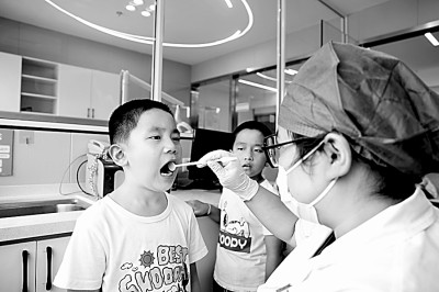 浙江嘉興經(jīng)開區(qū)組織兒童牙齒義診活動走進(jìn)嘉北街道暑托班。張娟攝/光明圖片