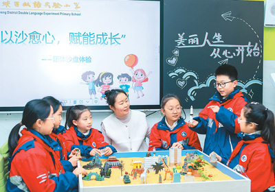 近日,多地中小學(xué)開學(xué),迎來春季新學(xué)期。圖為山東省棗莊市薛城區(qū)雙語實(shí)驗小學(xué)老師為學(xué)生進(jìn)行心理健康輔導(dǎo)。王龍飛攝(新華社發(fā))