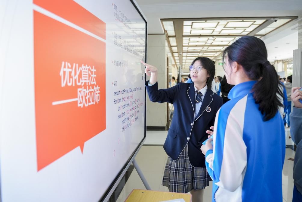 “數(shù)模筑夢”板塊中,學生們展示了在數(shù)學建模方面的成果,在日常的生活和學習中,大模型工具提升了學生用數(shù)學的眼光看世界的能力,學生也不斷通過建模豐富著大模型的功能。