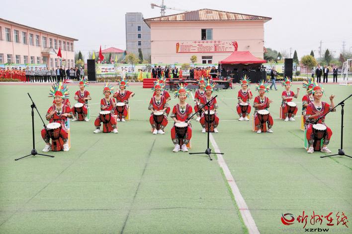 筆峰小學(xué)學(xué)生進行手鼓表演