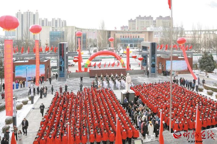 本報(bào)訊 近日,雪后的范亭中學(xué)彩門高懸,紅旗飄揚(yáng),軍樂高奏,鑼鼓喧天,校園提質(zhì)改造一期工程竣工典禮儀式在學(xué)校將軍廣場(chǎng)隆重舉行。