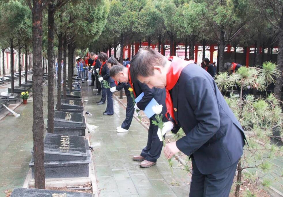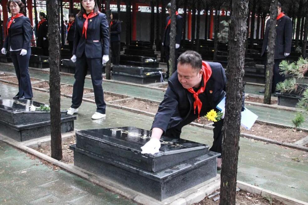 在祭奠活動中,同學(xué)們跟隨盧俊芬老師一道學(xué)習(xí)了趙正午烈士的革命故事,為烈士陵園的先烈們敬獻花籃、默哀,并細致的擦拭了每座烈士墓碑,以此表達對先烈們的無限哀思。