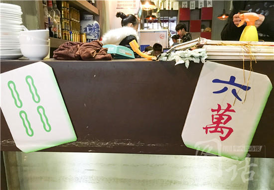 店內(nèi)還裝飾著麻將圖案。http://district.ce.cn/newarea/roll/201602/23/t20160223_9009295.shtml