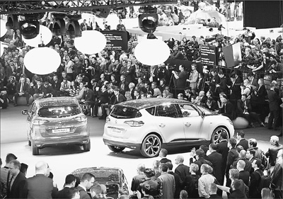 在第八十六屆日內(nèi)瓦車展上,人們在參觀雷諾公司推出的全新車型Scenic。 新華社發(fā)