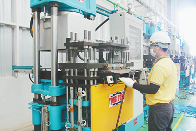 宋卡橡膠城將成為泰國最大最完善的橡膠產業(yè)園與橡膠產品研發(fā)和生產中心。圖為一名員工在橡膠制品廠工作。本報記者 孫廣勇攝
