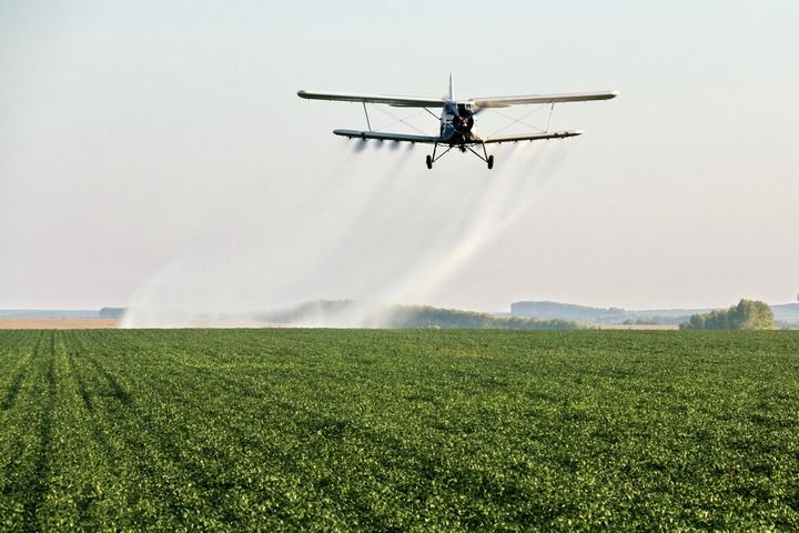 在北大荒集團(tuán)黑龍江五大連池農(nóng)場有限公司大豆地塊,農(nóng)用飛機(jī)在進(jìn)行“一噴多促”作業(yè)(2024年8月20日攝)。新華社發(fā)(陸文祥攝)